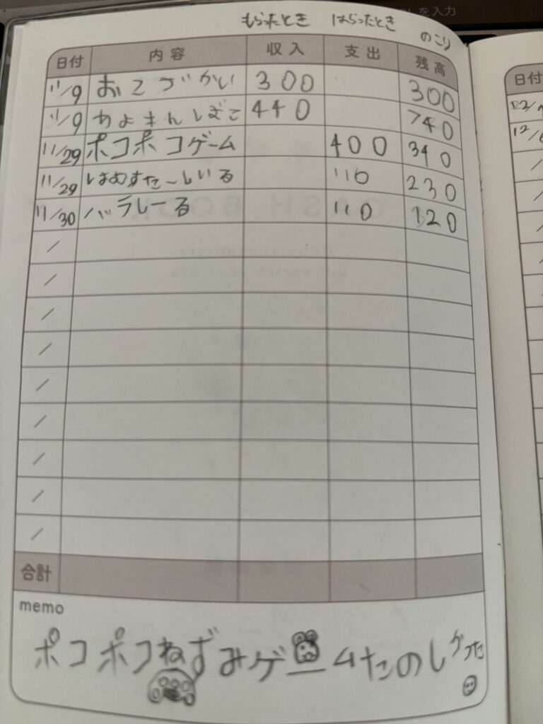 • お小遣いの報告をしてもらい、次のお小遣いを渡す
